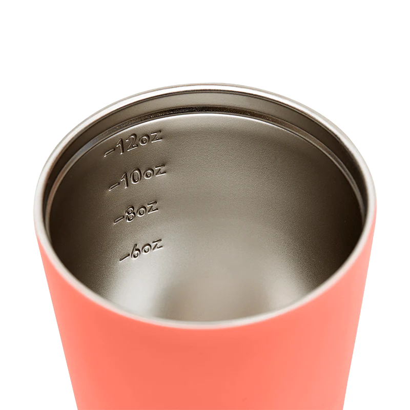Fressko reusable coffee cups tick all the boxes: they're vacuum sealed, scratch-resistant, have a spill-proof, screw-in, easy to clean, no fuss, lockable lid and internal barista lines. They fit perfectly under the baristas machine, perfectly in your standard cup holder and are ideal for travel. Stays hot up to 3 hours, dependant on use.