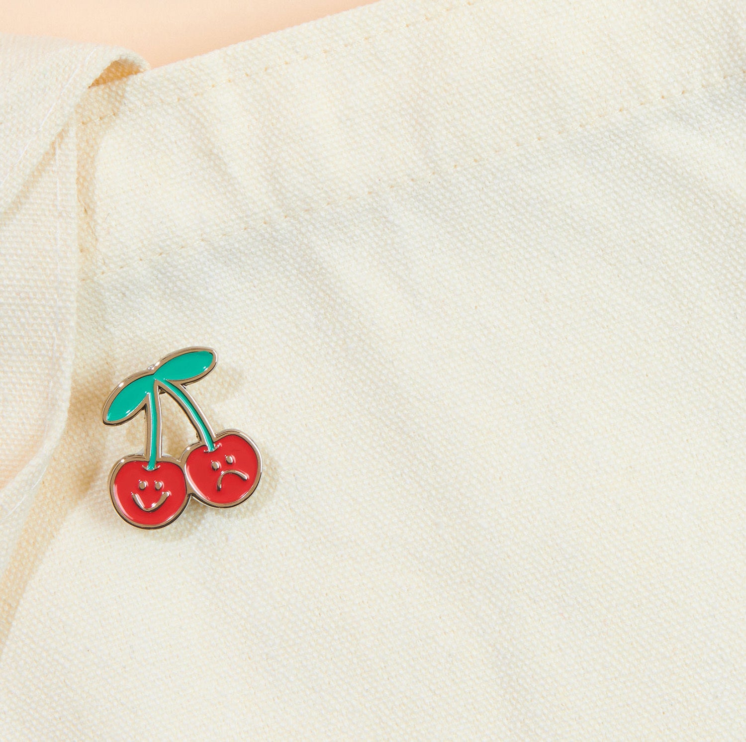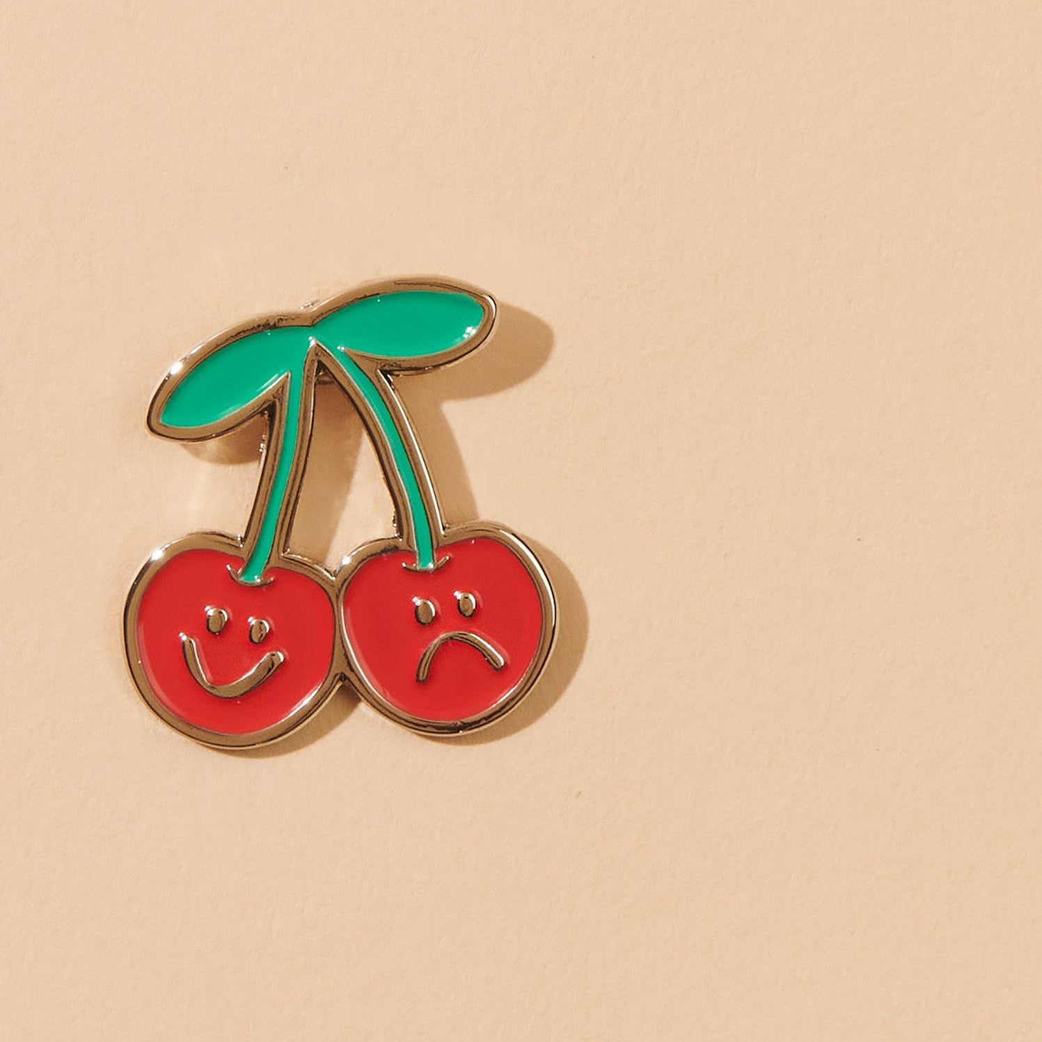 Because we're all a little contradictory aren't we? One cherry has a smiley face and the other sports a frown. This enamel pin makes a sweet little gift and looks great on a denim jacket or a bag. Comes packaged on a piece of card.