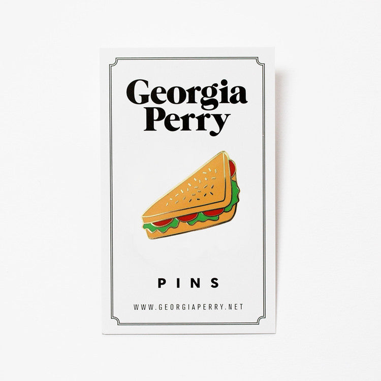 Georgia Perry is an artistic genius, and we sure do love her pins! This one is a tomato and lettuce sandwich and it makes me think of my school lunch boxes.
