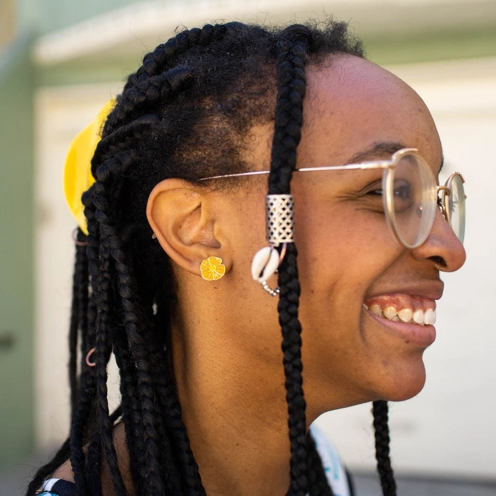18k gold plated enamel earrings with surgical steel posts. The flowers measure approximately 1.3-1.4cm in diameter.