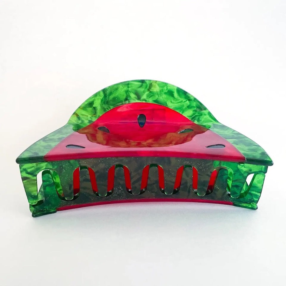 This sweet and juicy watermelon hair claw is made from cellulose acetate, a plant-based alternative to plastic.