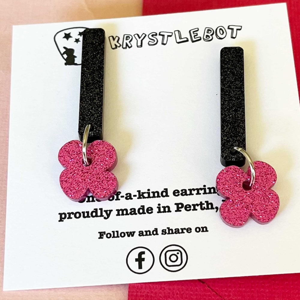 Krystlebot Lucky Charm Pop Dangles - Black/Fucshia Glitter
