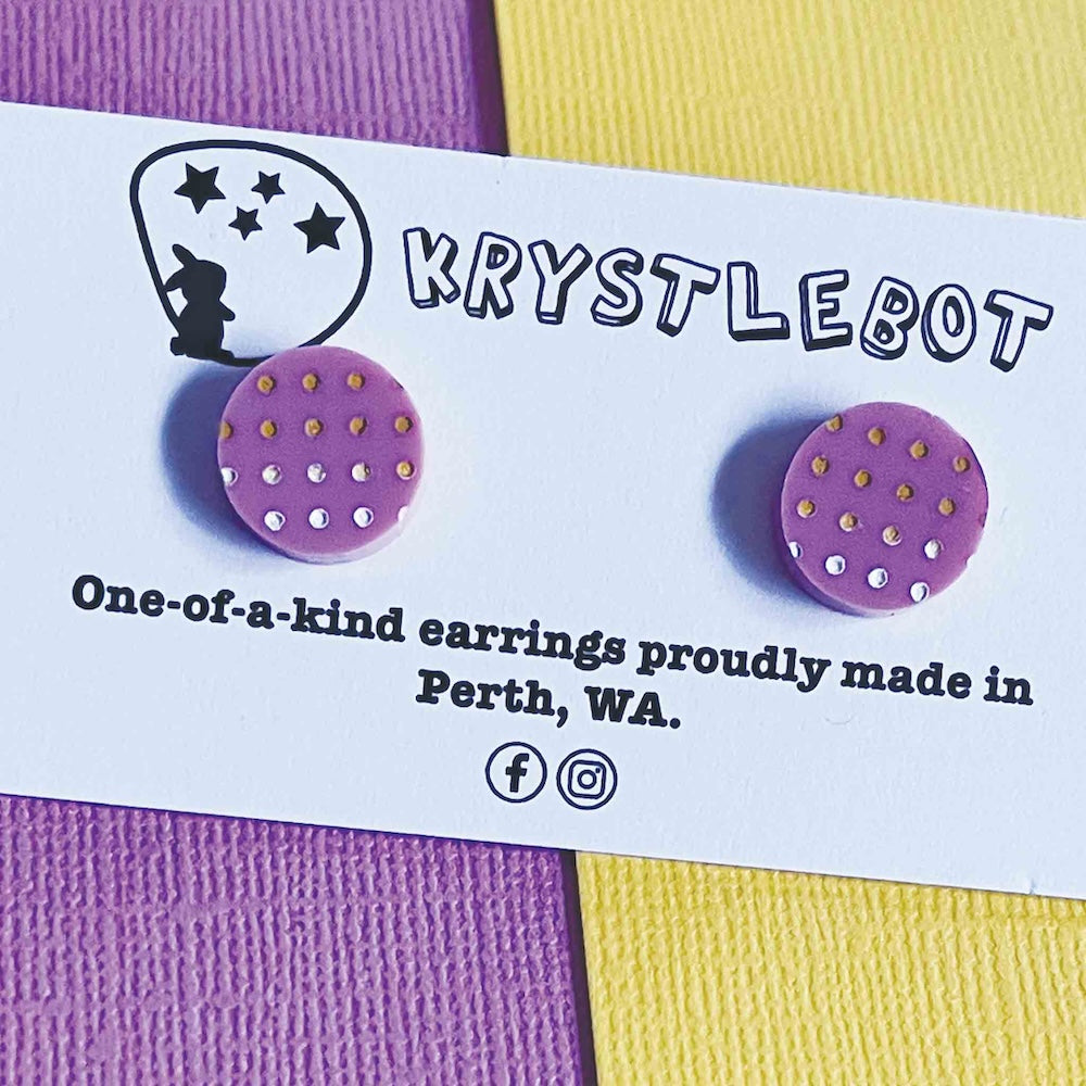 Krystlebot Polka Dot Circle Studs - Lilac & Mustard Yellow
