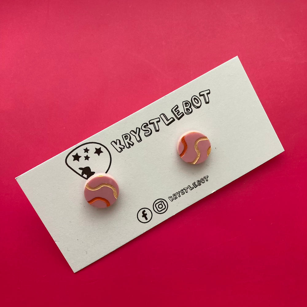 Krystlebot Squiggle Circle Studs - Pink/Orange