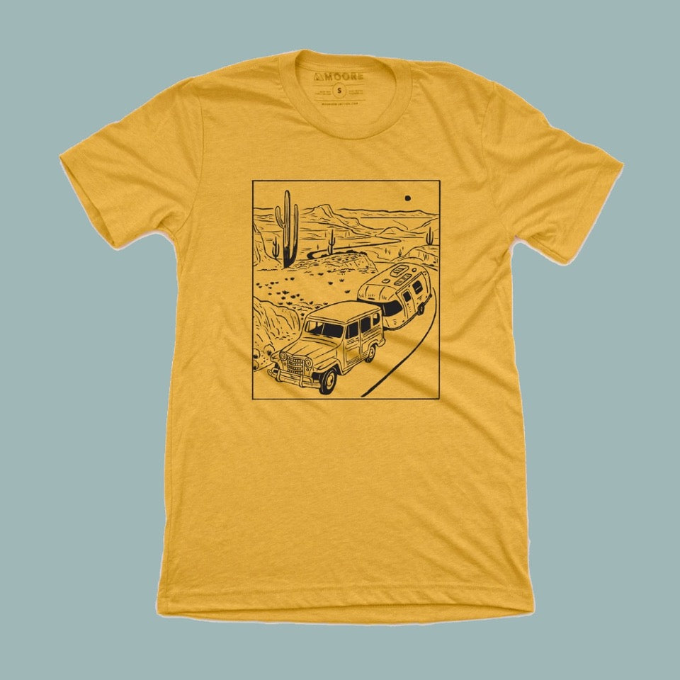 Moore Collection design and print their tees in their studio in Denver, Colorado. Their creations are often inspired by the great outdoors, camping, road tripping and getting out under the vast, North American skies. Tees are sweatshop-free and WRAP certified.
