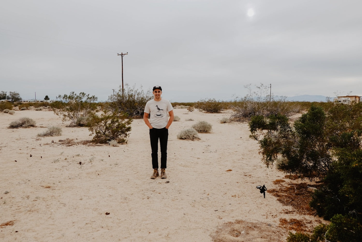 Moore Collection design and print their tees in their studio in Denver, Colorado. Their creations are often inspired by the great outdoors, camping, road tripping and getting out under the vast, North American skies. This one has a road runner perched atop a hat.
