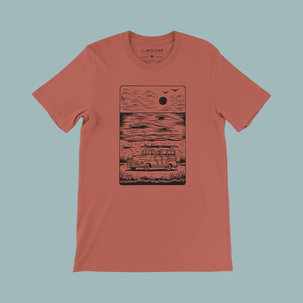 Moore Collection design and print their tees in their studio in Denver, Colorado. Their creations are often inspired by the great outdoors, camping, road tripping and getting out under the vast, North American skies.