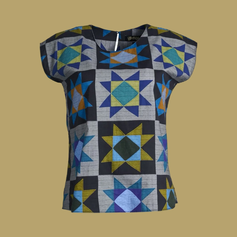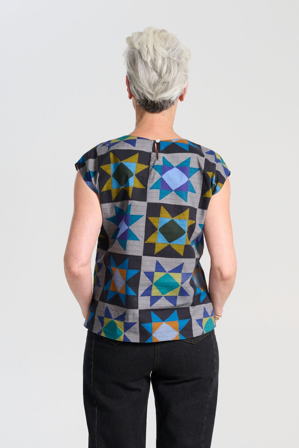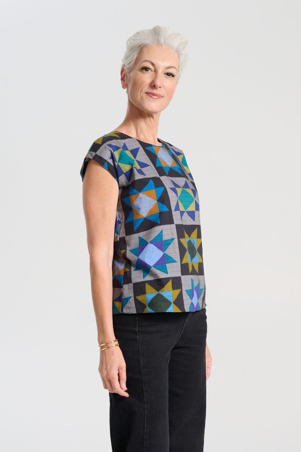 Work or play, Olga de Polga blouses are so easy to wear! This style is what Olga calls the tee, and it is cut with short cap sleeves that sit just off the shoulder. They look great loose over jeans on the weekend, tucked into a skirt or trousers in the office or out for lunch. The tapered body works really well under a jacket, too.