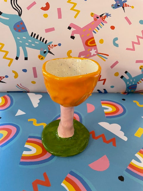 Pansy Goblet - Orange With Green Base