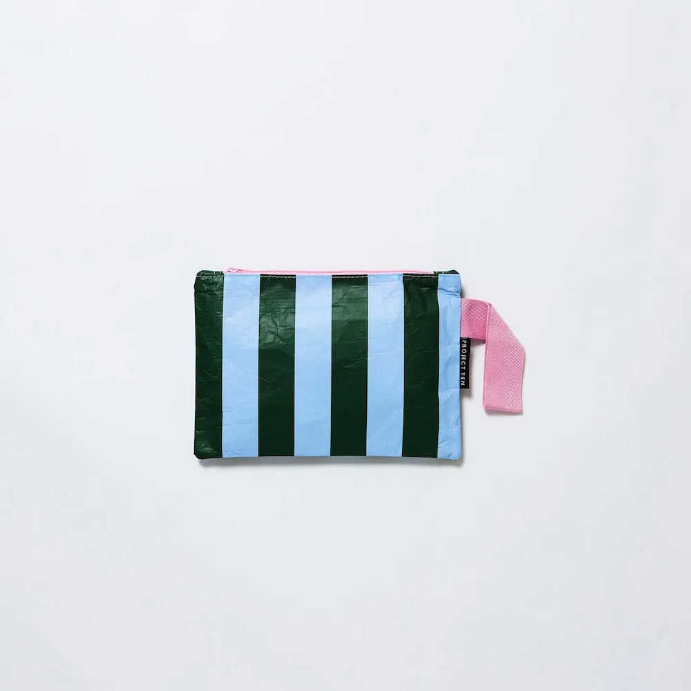 Project Ten Green Blue Stripe Mini Zip Pouch
