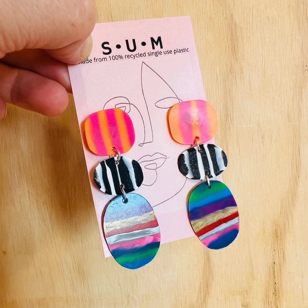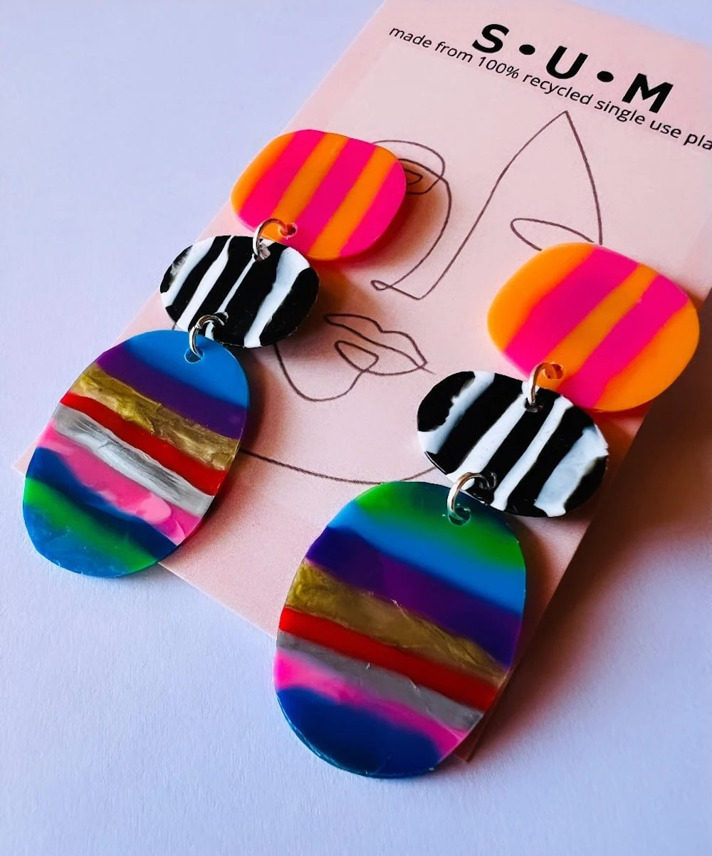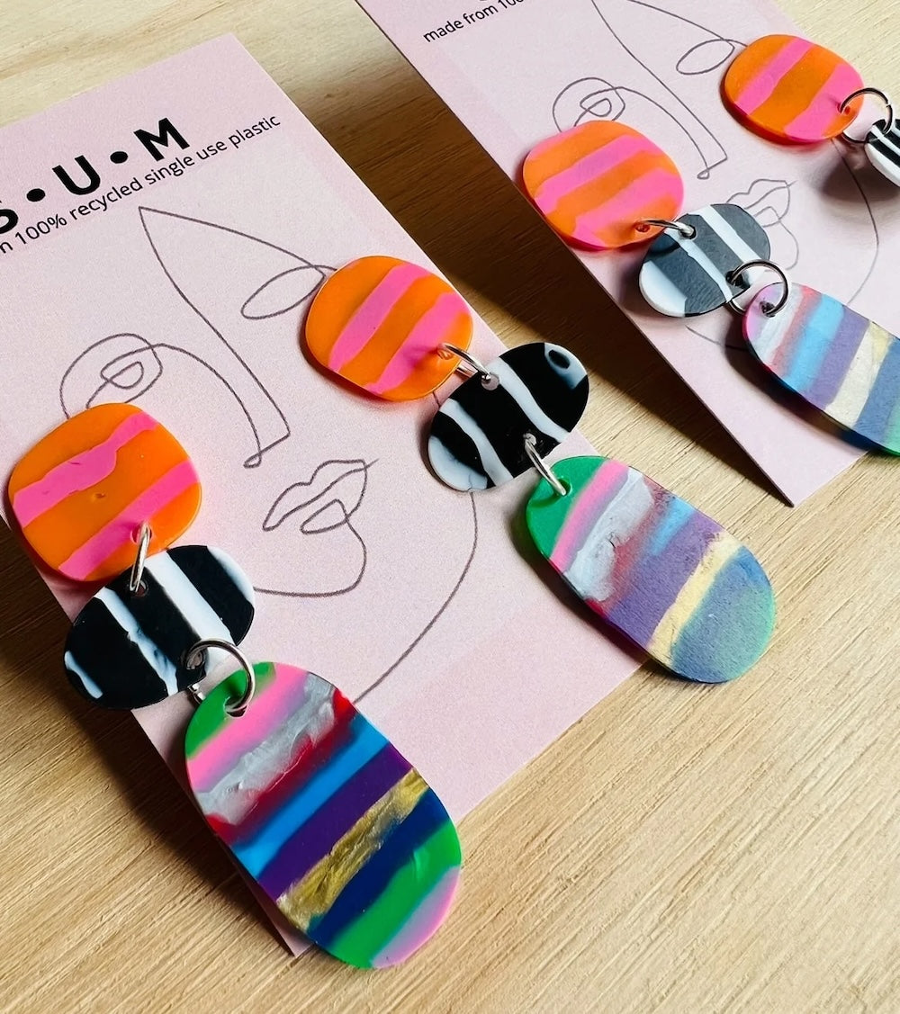 Single Use Multiverse takes single use plastic and turns it into works of art! All the earrings are handmade in Australia by designer Jess, and all are unique. Saving plastic from landfill one pair of earrings at a time.